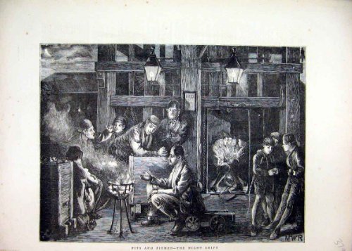 Pits Pitmen 1871 Coal Mining Night Shift Fire Fine Art Review